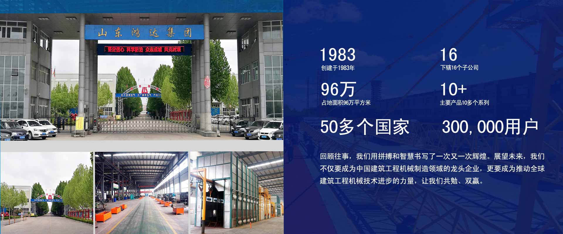 山東鴻達(dá)建工集團(tuán)有限公司創(chuàng)建于1983年,是一個(gè)集建筑工程機(jī)械制造業(yè)、食品加工業(yè)、建筑房地產(chǎn)業(yè)、餐飲服務(wù)業(yè)、聚氨酯新型保溫材料等為一體的多元化大型企業(yè)集團(tuán),下轄16個(gè)子公司,占地面積96萬平方米,建筑面積68萬平方米。